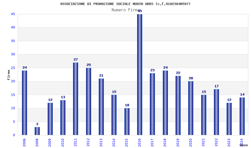 | Anno | Firme | Importi | Media | Naz. | Reg. | Prov. | Comu. |