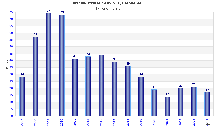 | Anno | Firme | Importi | Media | Naz. | Reg. | Prov. | Comu. |