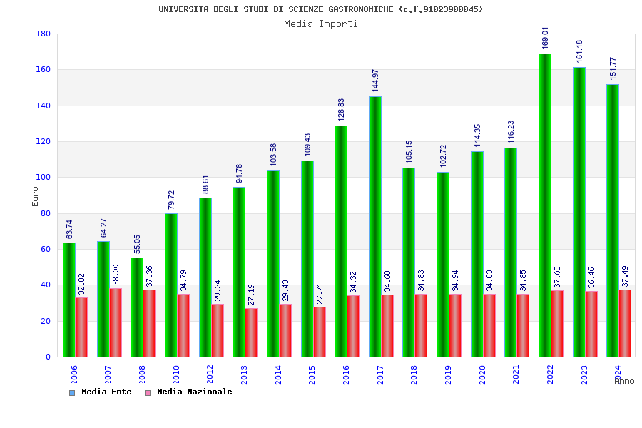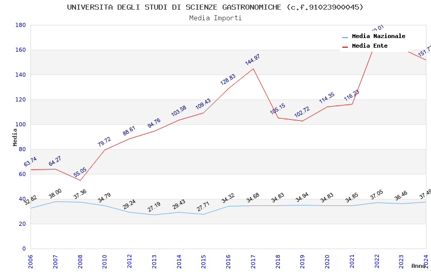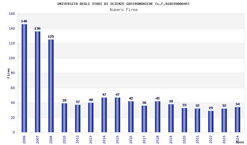 | Anno | Firme | Importi | Media | Naz. | Reg. | Prov. | Comu. |