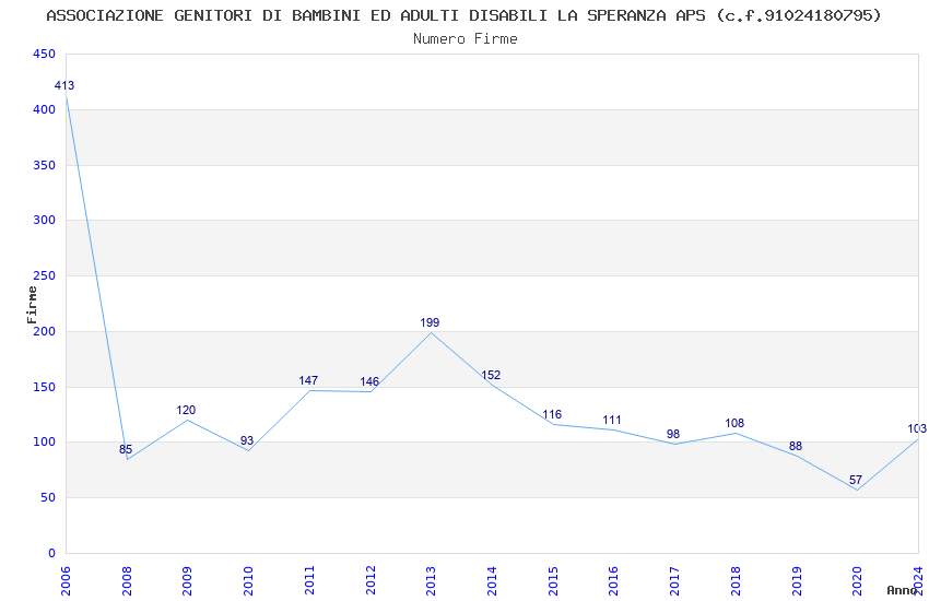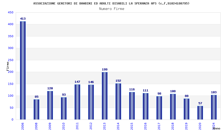 | Anno | Firme | Importi | Media | Naz. | Reg. | Prov. | Comu. |