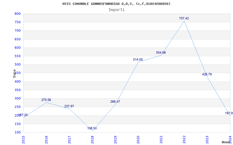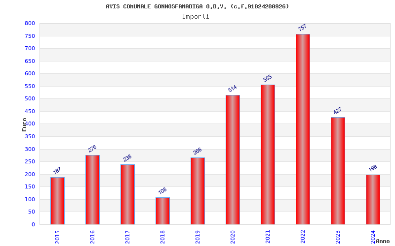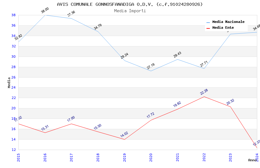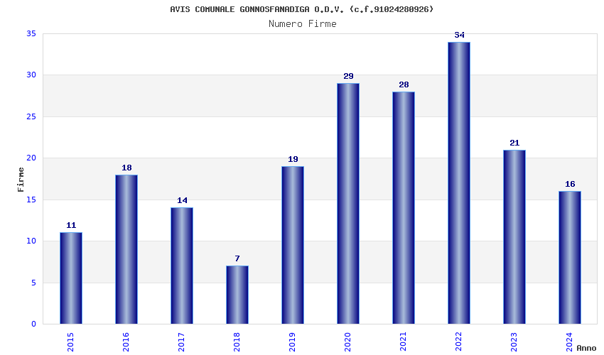 | Anno | Firme | Importi | Media | Naz. | Reg. | Prov. | Comu. |