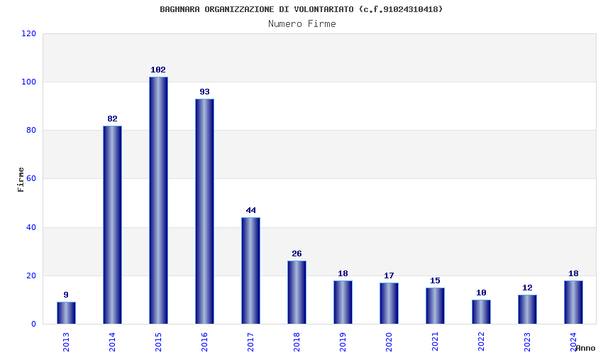 | Anno | Firme | Importi | Media | Naz. | Reg. | Prov. | Comu. |