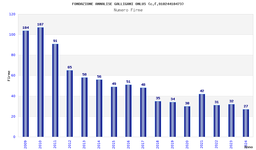 | Anno | Firme | Importi | Media | Naz. | Reg. | Prov. | Comu. |