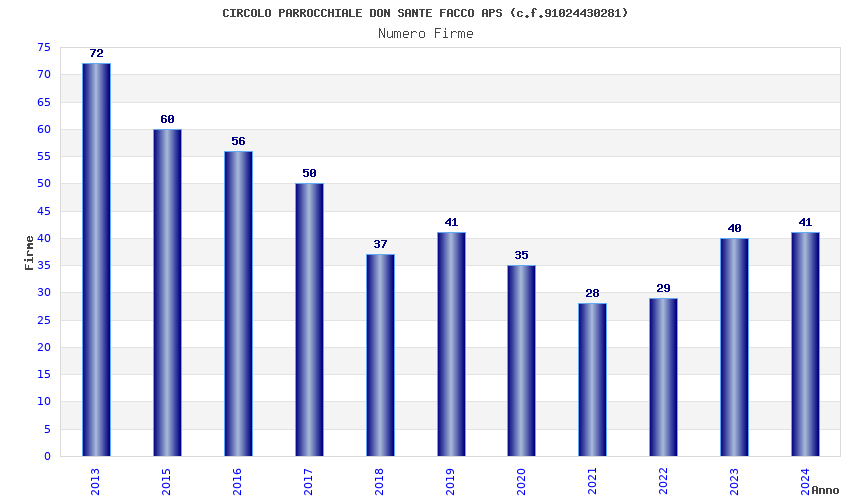 | Anno | Firme | Importi | Media | Naz. | Reg. | Prov. | Comu. |