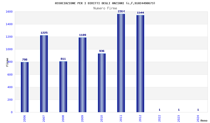 | Anno | Firme | Importi | Media | Naz. | Reg. | Prov. | Comu. |