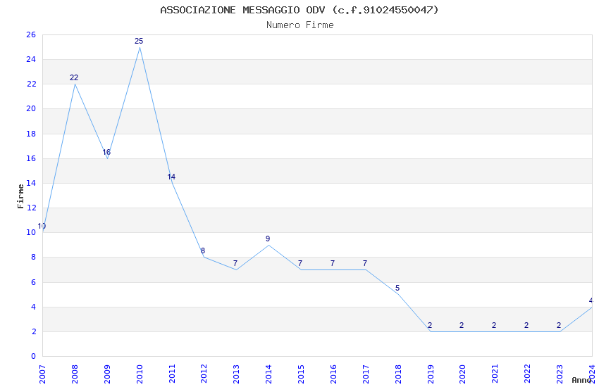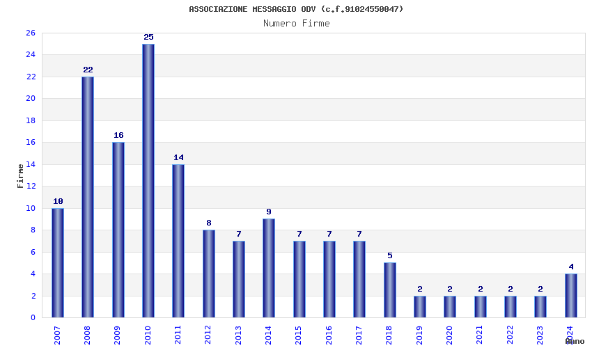 | Anno | Firme | Importi | Media | Naz. | Reg. | Prov. | Comu. |