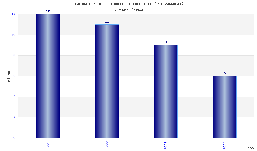 | Anno | Firme | Importi | Media | Naz. | Reg. | Prov. | Comu. |