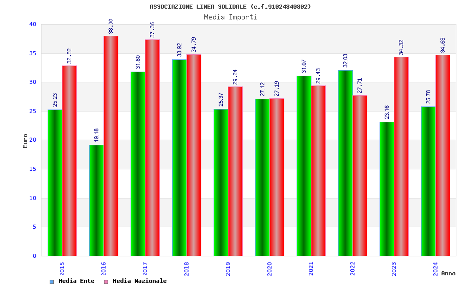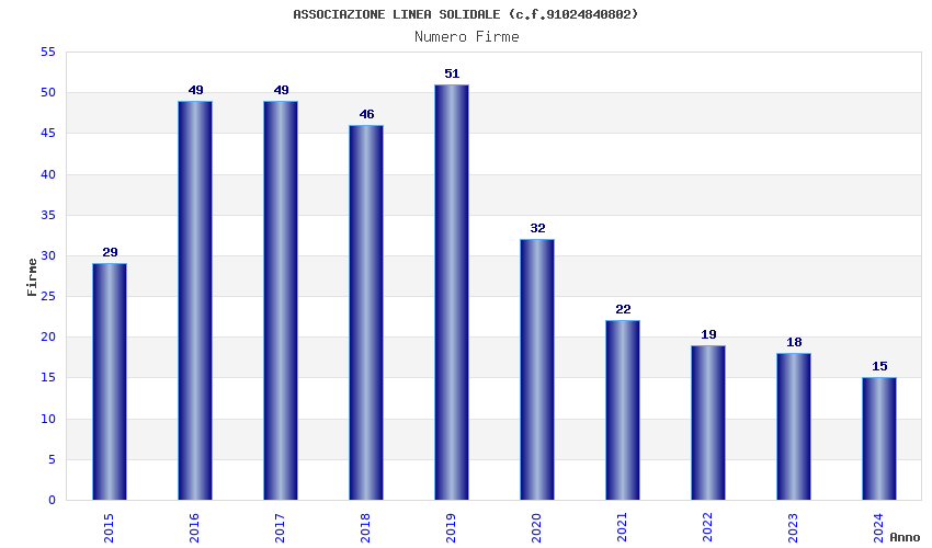 | Anno | Firme | Importi | Media | Naz. | Reg. | Prov. | Comu. |