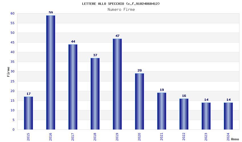 | Anno | Firme | Importi | Media | Naz. | Reg. | Prov. | Comu. |