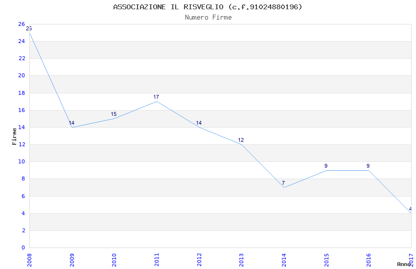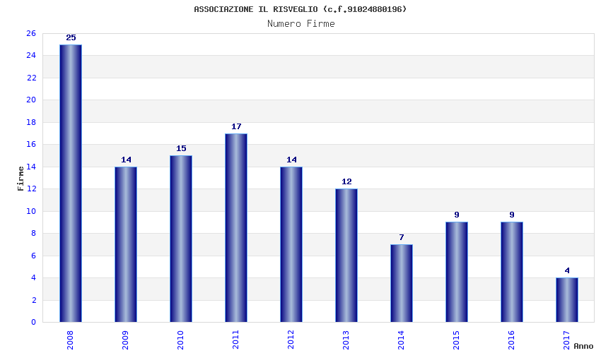 | Anno | Firme | Importi | Media | Naz. | Reg. | Prov. | Comu. |