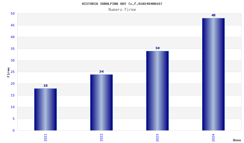 | Anno | Firme | Importi | Media | Naz. | Reg. | Prov. | Comu. |