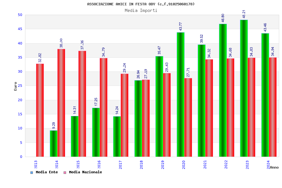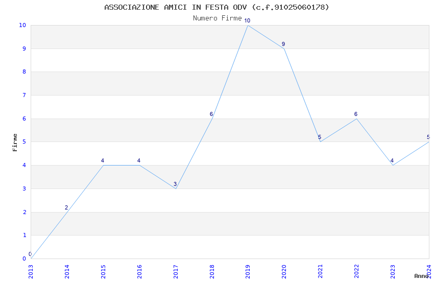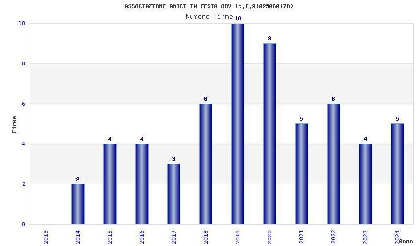 | Anno | Firme | Importi | Media | Naz. | Reg. | Prov. | Comu. |