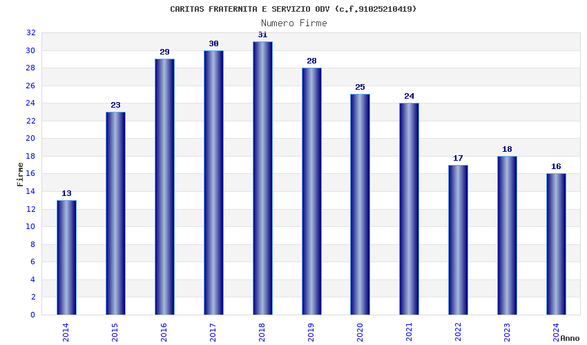 | Anno | Firme | Importi | Media | Naz. | Reg. | Prov. | Comu. |