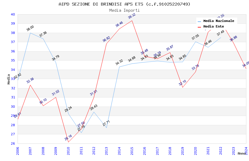 | Anno | Firme | Importi | Media | Naz. | Reg. | Prov. | Comu. |