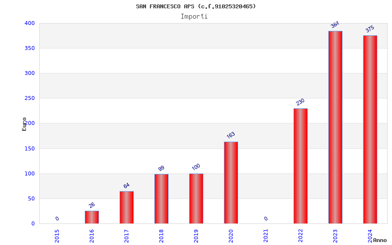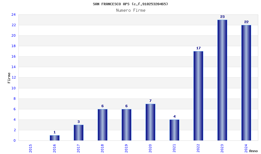 | Anno | Firme | Importi | Media | Naz. | Reg. | Prov. | Comu. |