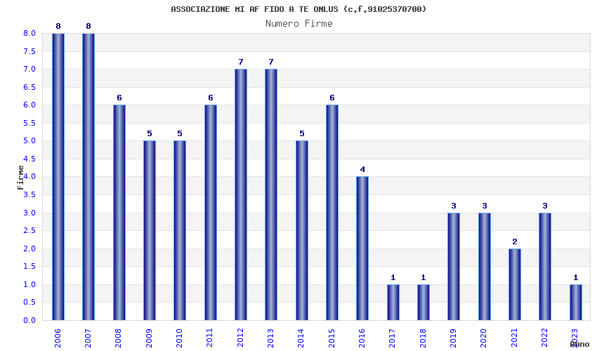 | Anno | Firme | Importi | Media | Naz. | Reg. | Prov. | Comu. |