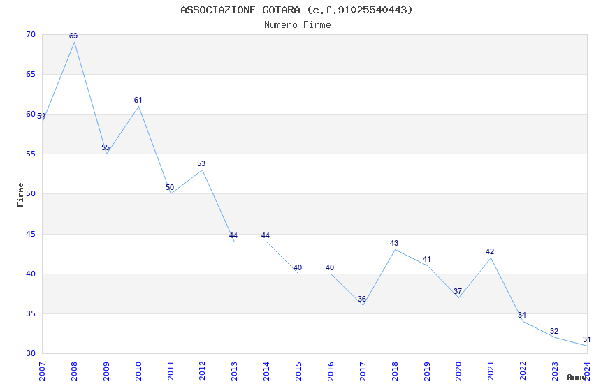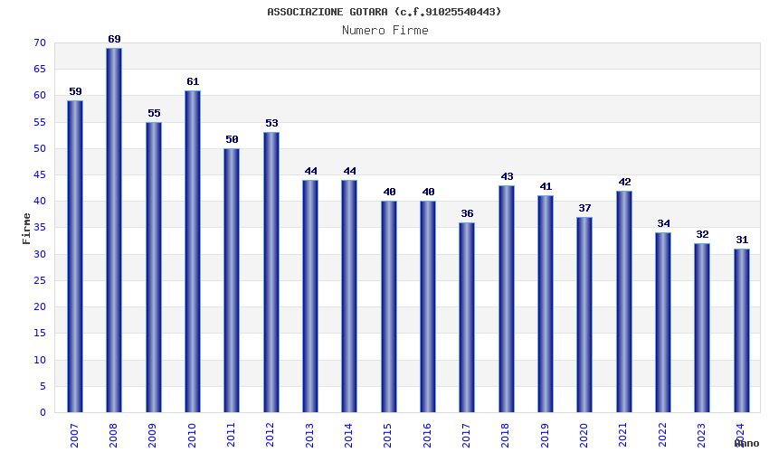 | 2008 | 69 | 2.441,16 | 35,38 | 13.372 | 326 | 43 | 1 |