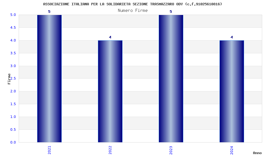 | Anno | Firme | Importi | Media | Naz. | Reg. | Prov. | Comu. |