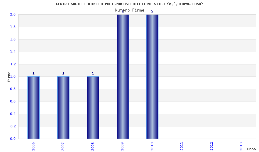 | Anno | Firme | Importi | Media | Naz. | Reg. | Prov. | Comu. |