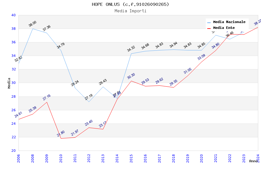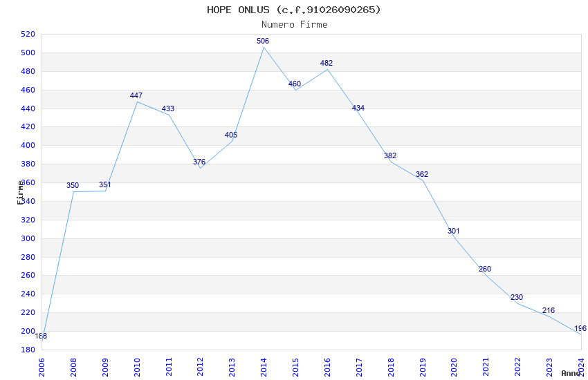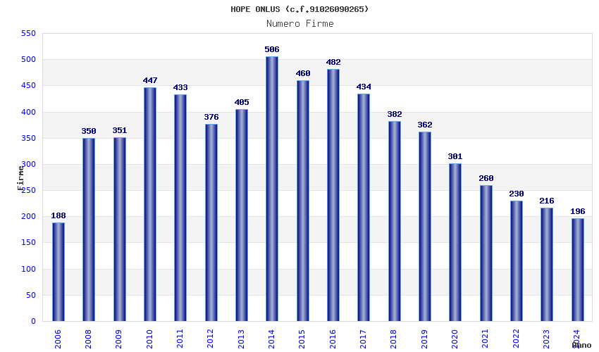 | Anno | Firme | Importi | Media | Naz. | Reg. | Prov. | Comu. |