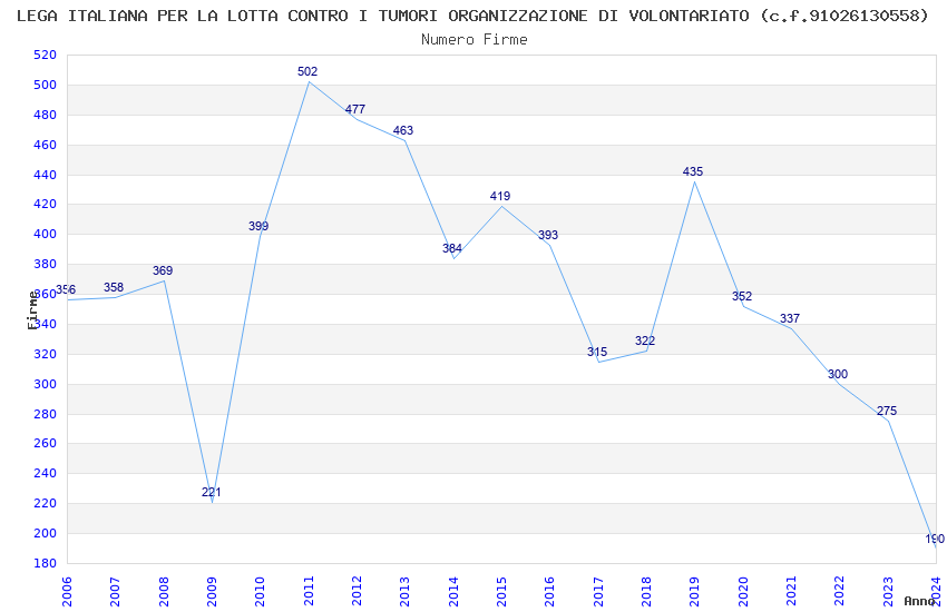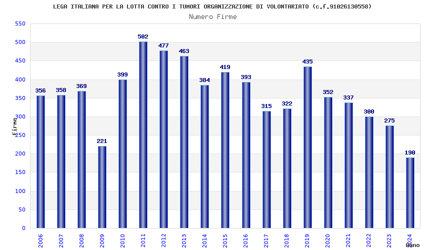 | Anno | Firme | Importi | Media | Naz. | Reg. | Prov. | Comu. |