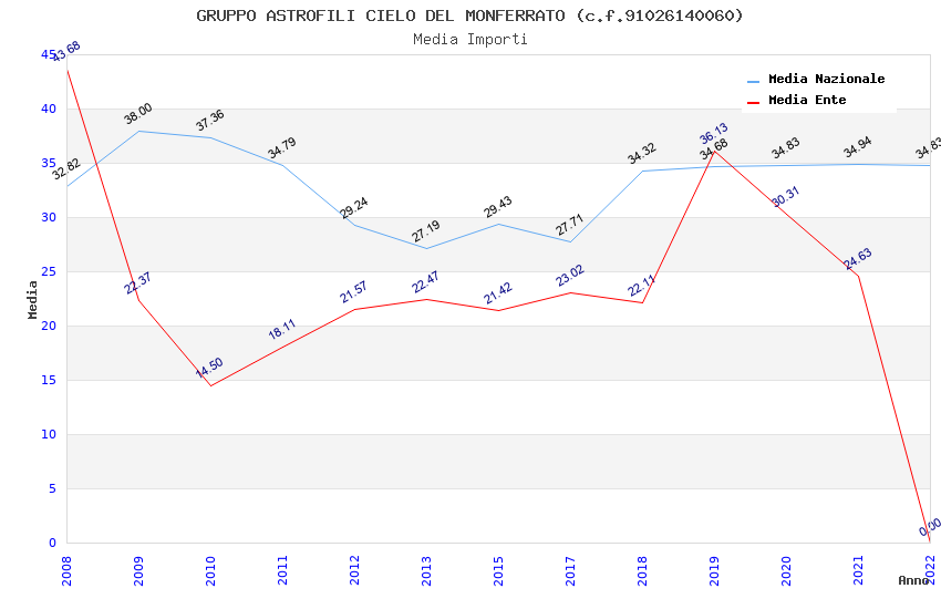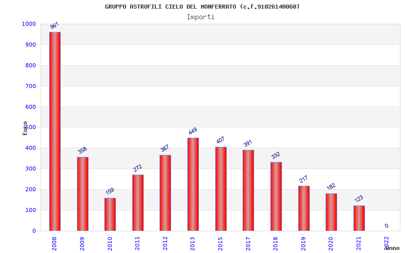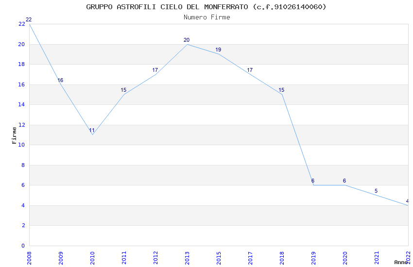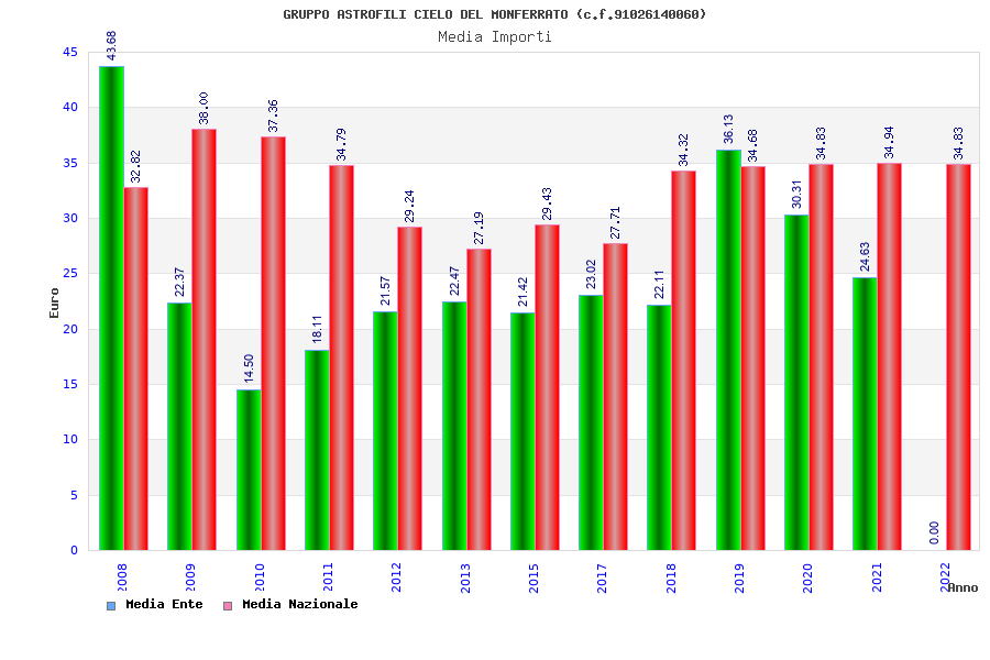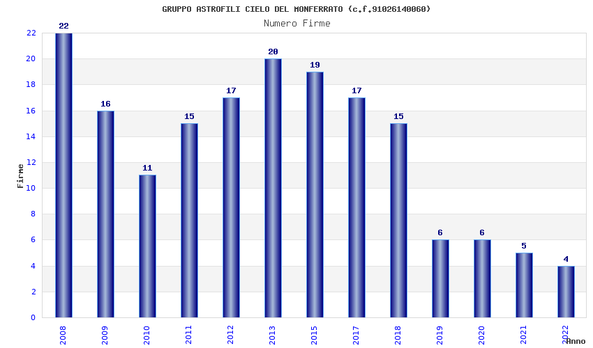 | Anno | Firme | Importi | Media | Naz. | Reg. | Prov. | Comu. |