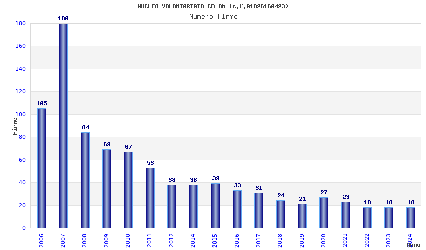 | Anno | Firme | Importi | Media | Naz. | Reg. | Prov. | Comu. |