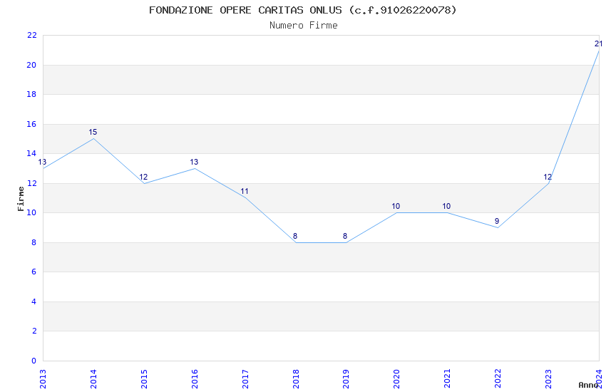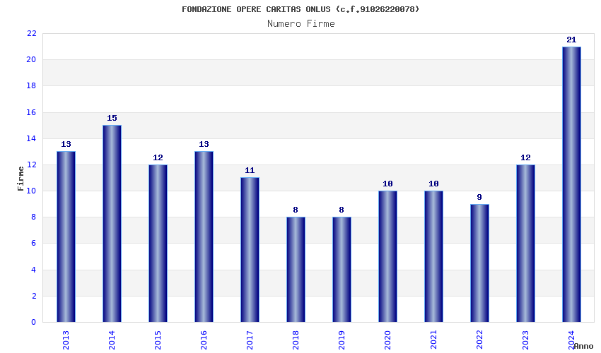 | Anno | Firme | Importi | Media | Naz. | Reg. | Prov. | Comu. |