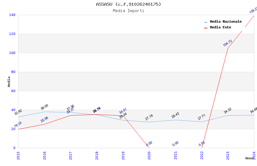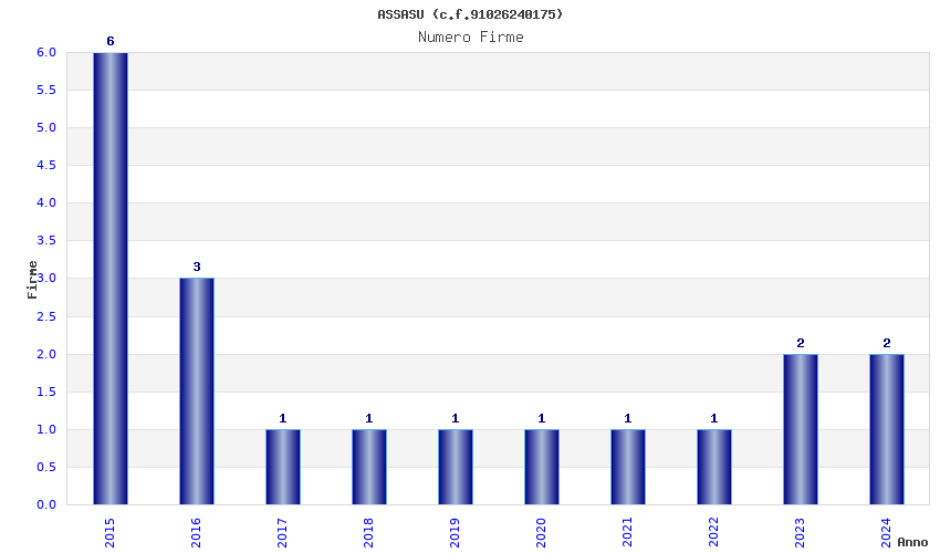 | Anno | Firme | Importi | Media | Naz. | Reg. | Prov. | Comu. |