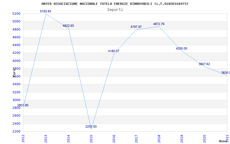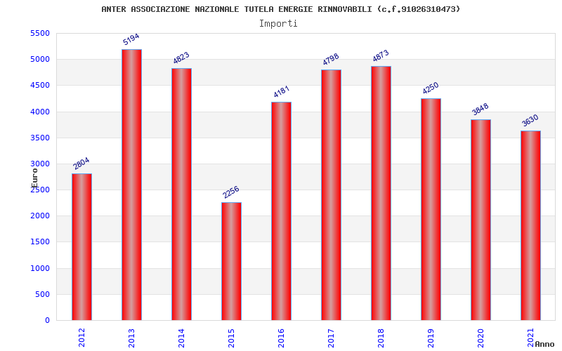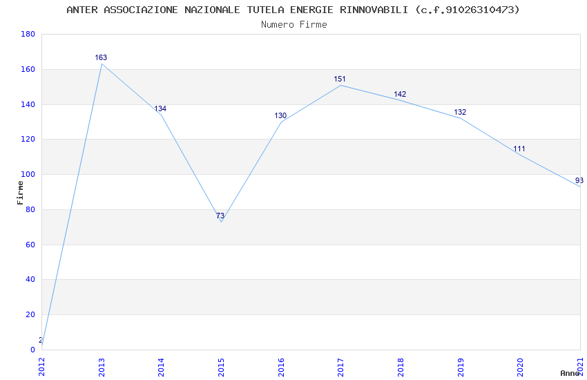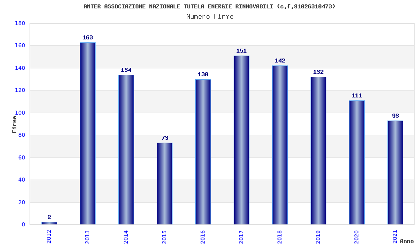 | Anno | Firme | Importi | Media | Naz. | Reg. | Prov. | Comu. |