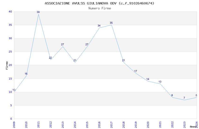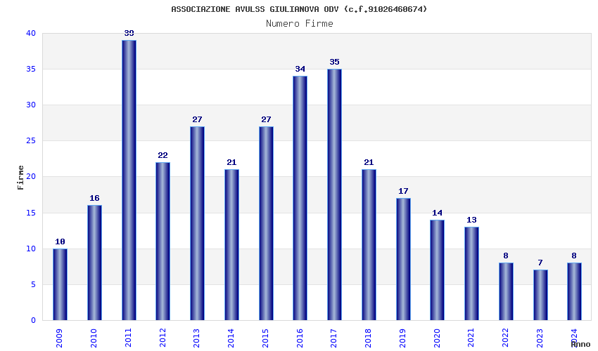 | 2011 | 39 | 722,96 | 18,54 | 22.726 | 369 | 79 | 10 |