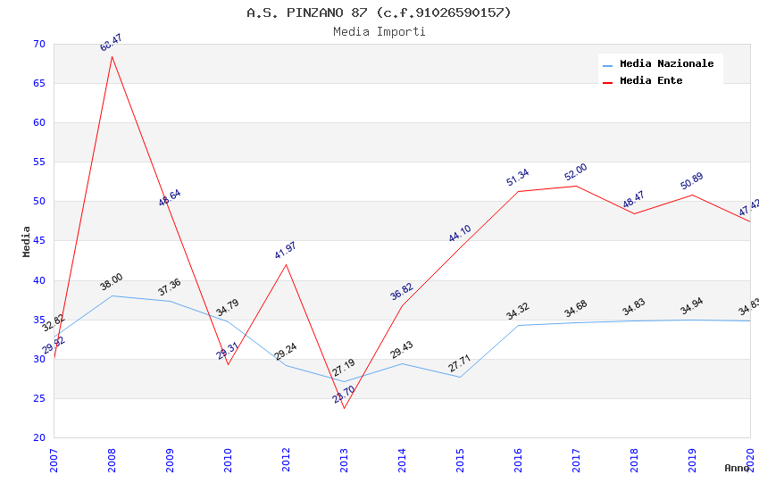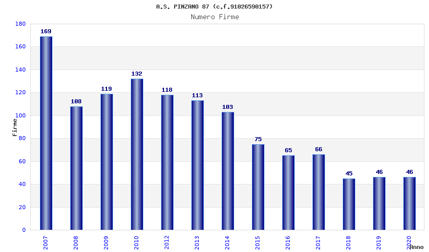 | Anno | Firme | Importi | Media | Naz. | Reg. | Prov. | Comu. |