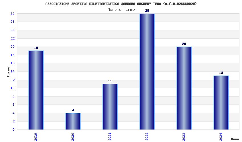 | Anno | Firme | Importi | Media | Naz. | Reg. | Prov. | Comu. |