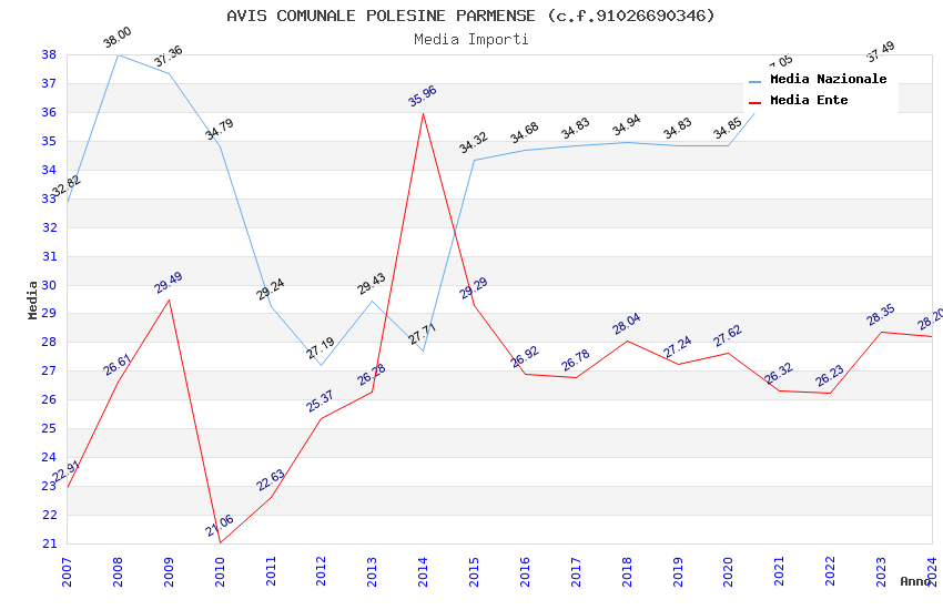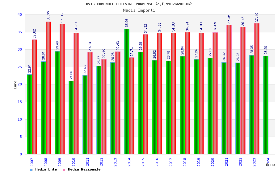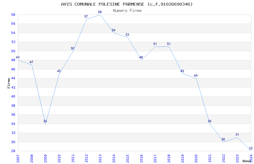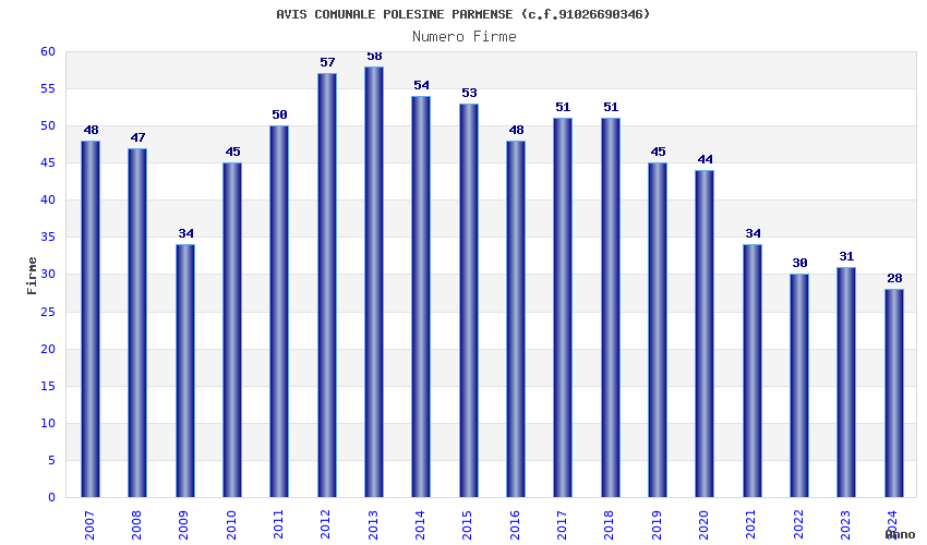 | Anno | Firme | Importi | Media | Naz. | Reg. | Prov. | Comu. |
