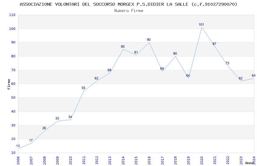 | 2019 | 64 | 2.413,50 | 37,71 | 21.028 | 71 | 71 | 2 |