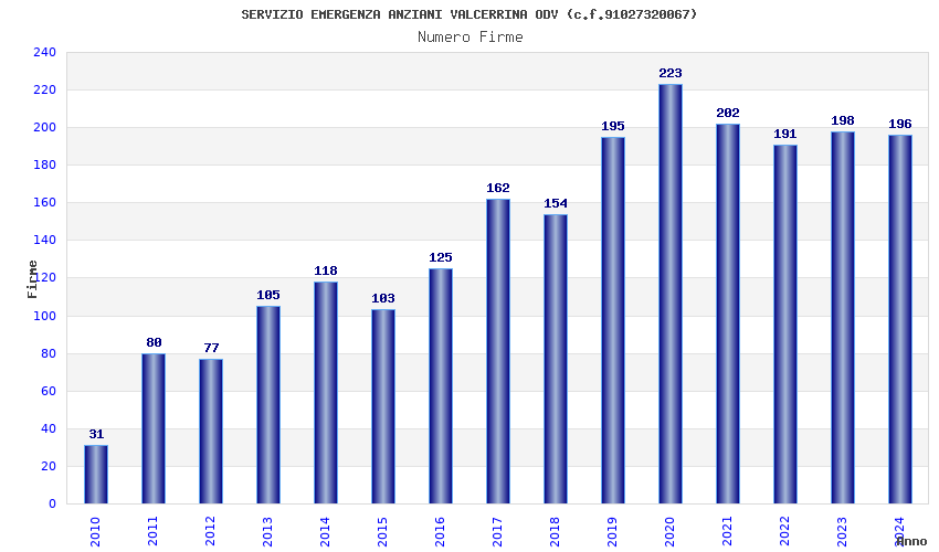 | 2024 | 196 | 4.003,31 | 20,43 | 13.395 | 886 | 66 | 1 |