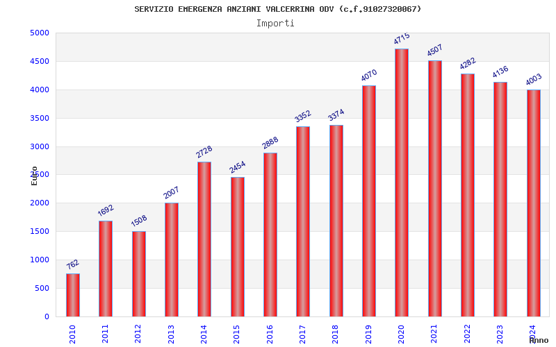 | Anno | Firme | Importi | Media | Naz. | Reg. | Prov. | Comu. |