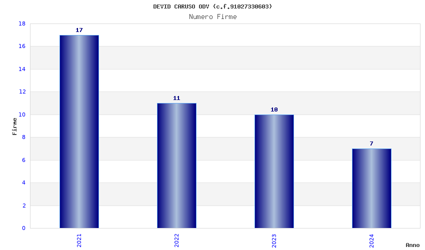 | Anno | Firme | Importi | Media | Naz. | Reg. | Prov. | Comu. |