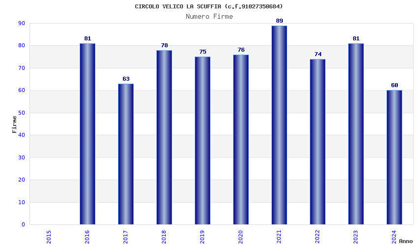 | 2021 | 89 | 6.491,58 | 72,94 | 8.262 | 137 | 44 | 27 |
