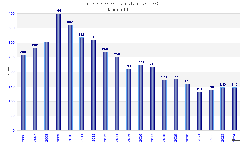 | Anno | Firme | Importi | Media | Naz. | Reg. | Prov. | Comu. |