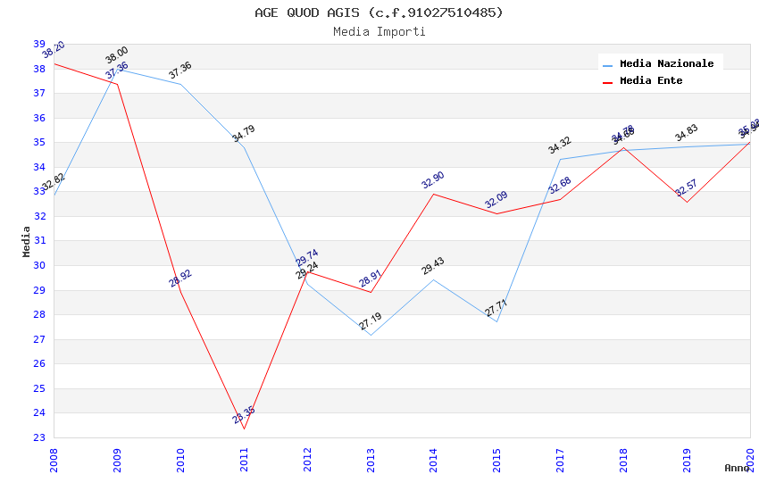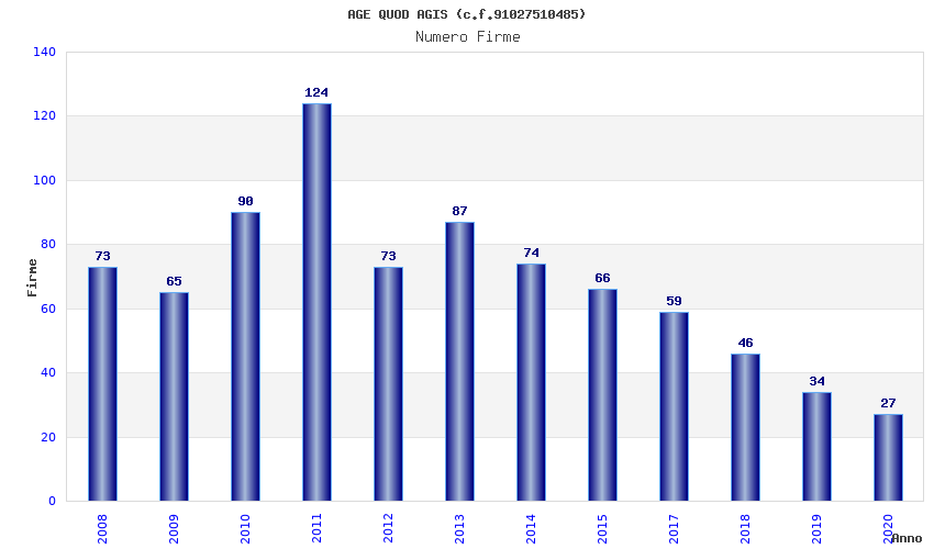 | Anno | Firme | Importi | Media | Naz. | Reg. | Prov. | Comu. |