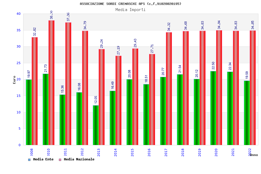 | Anno | Firme | Importi | Media | Naz. | Reg. | Prov. | Comu. |