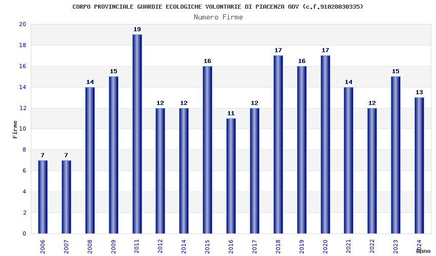 | Anno | Firme | Importi | Media | Naz. | Reg. | Prov. | Comu. |