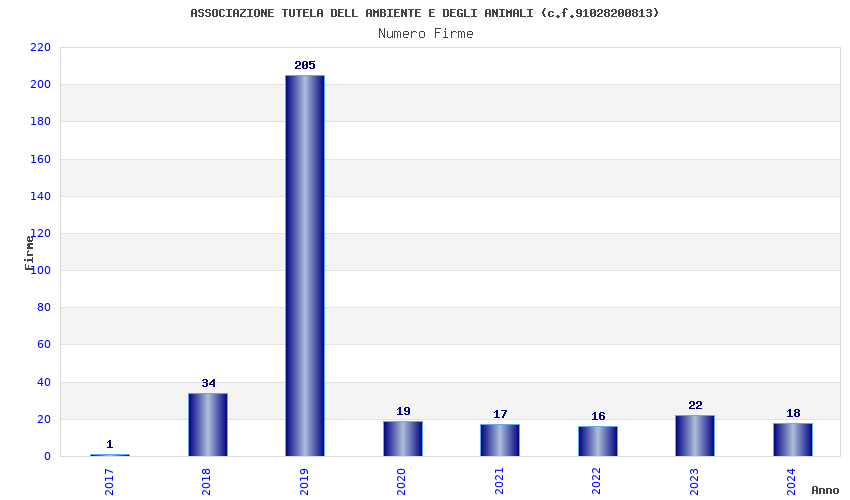 | 2019 | 205 | 4.384,14 | 21,39 | 12.647 | 699 | 57 | 2 |