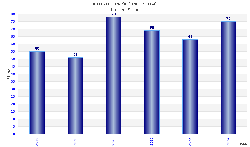 | Anno | Firme | Importi | Media | Naz. | Reg. | Prov. | Comu. |