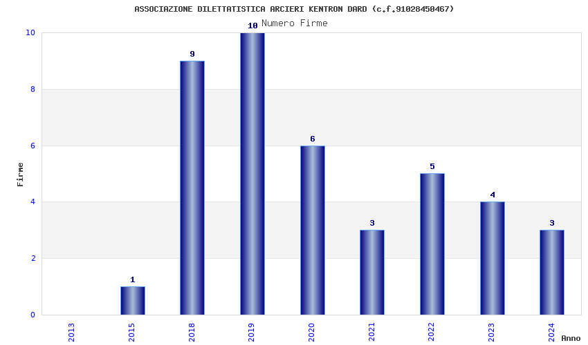 | Anno | Firme | Importi | Media | Naz. | Reg. | Prov. | Comu. |