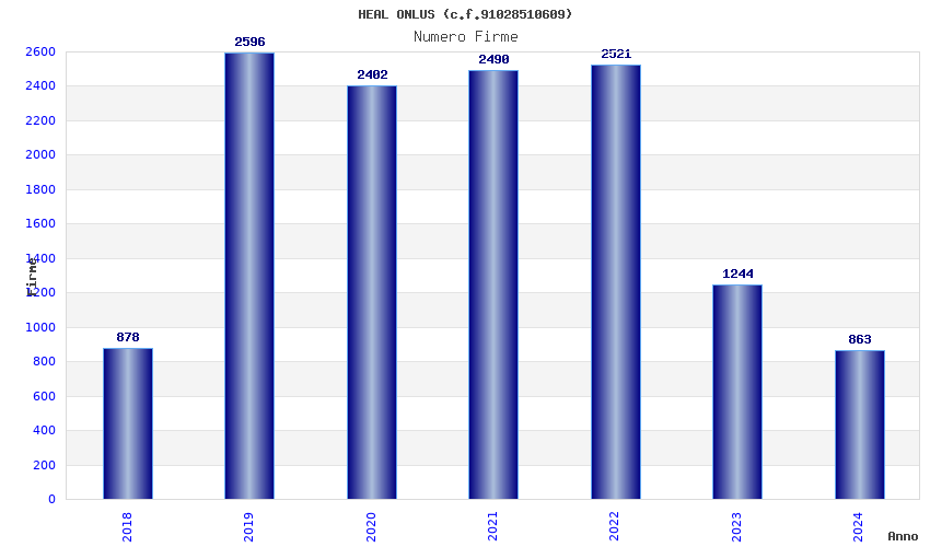 | Anno | Firme | Importi | Media | Naz. | Reg. | Prov. | Comu. |