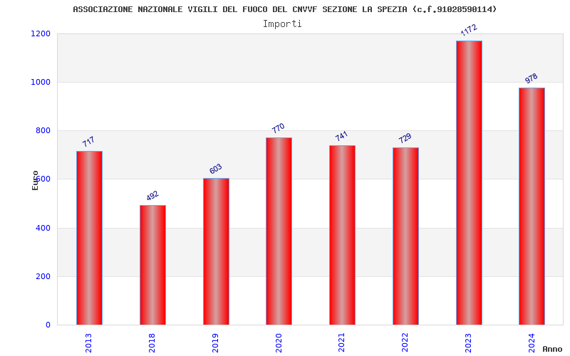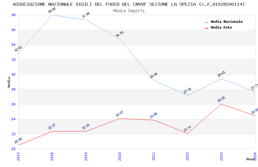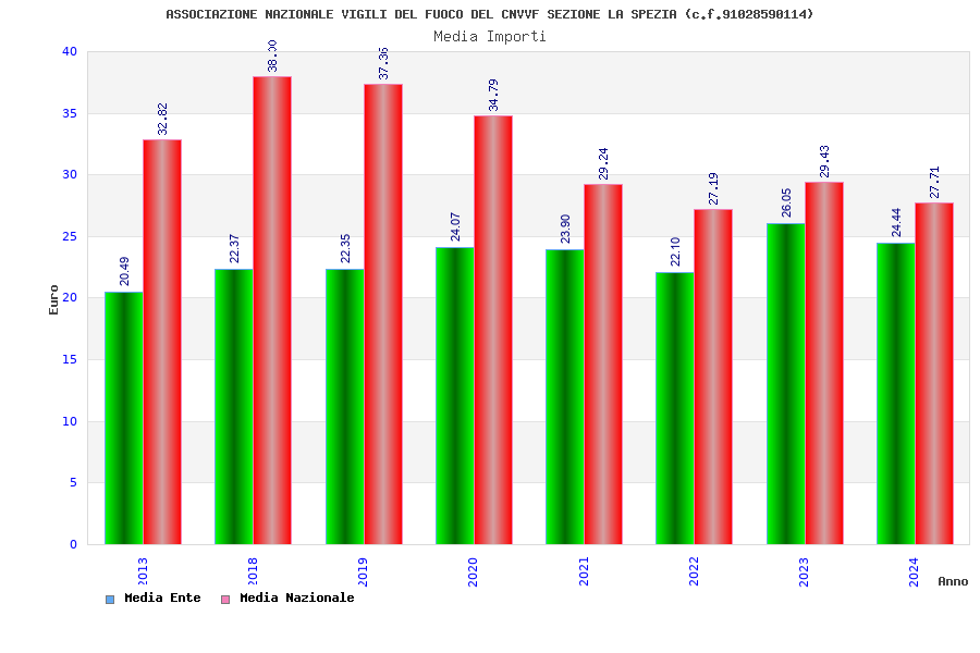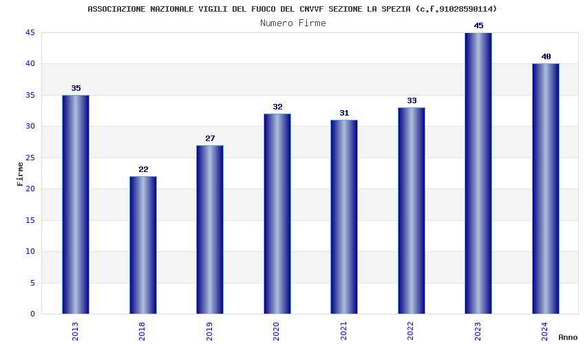 | Anno | Firme | Importi | Media | Naz. | Reg. | Prov. | Comu. |
