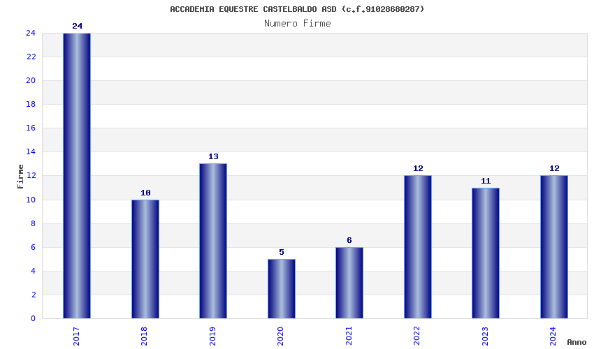 | Anno | Firme | Importi | Media | Naz. | Reg. | Prov. | Comu. |