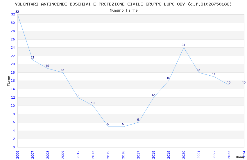 | Anno | Firme | Importi | Media | Naz. | Reg. | Prov. | Comu. |